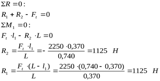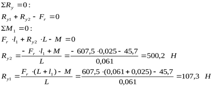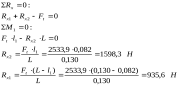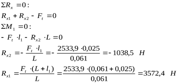 Реакции от окружной силы:
