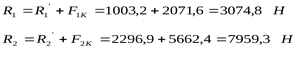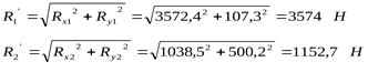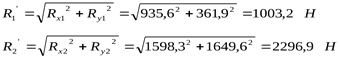 Суммарные реакции на опоры: