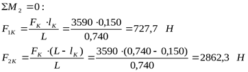 FК=3590 Н – консольная сила на конце вала;