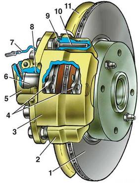 Рис. 6. Тормозной механизм переднего колеса автомобилей ваз 2110, ваз 2111, ваз 2112:
