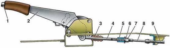 Рис. 9. Привод стояночной тормозной системы автомобилей ваз 2110, ваз 2111, ваз 2112: