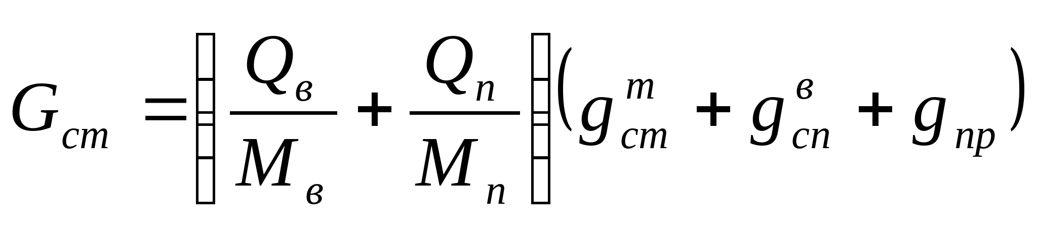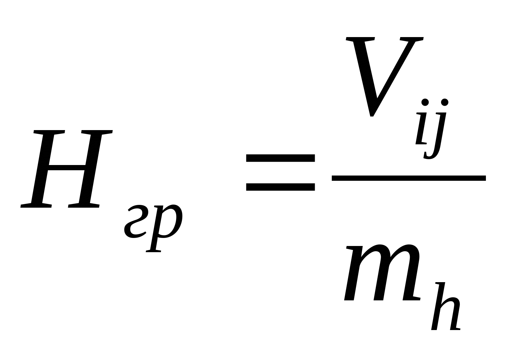 При композитной загрузке, а также для концевых помещений, если в разных частях помещения находятся различные грузы, фактическую нагрузку можно определить как сумму нагрузок от всех грузов, расположенных по вертикали с учетом высоты слоя груза и удельного погрузочного объема груза: