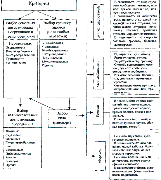 При осуществлении такого выбора следует учитывать свойства перевозимого груза и различных видов транспорта, которые были рассмотрены и классифицированы выше, а также ситуацию на рынке фирм-перевозчиков. Сюда же относится и наличие у перевозчиков той или иной стратегии управления транспортировкой, предоставление ими дополнительных услуг и уровень информатизации и контроля всего процесса транспортировки.
