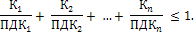 При одновременном содержании в воздухе рабочей зоны нескольких вредных веществ однонаправленного действия сумма отношений фактических концентраций каждого из них в воздухе (К1 , К2 , ..., Кn ) к их ПДК (ПДК1 , ПДК2 , ..., ПДКn ) не должна превышать единицы: