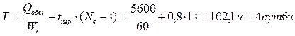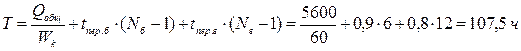 Время перевалки груза без использования буферного склада рассчитывается по формуле