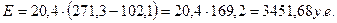 Е=25,7*125+19,4*20,4+44,8*16=4325,06 у.е.
