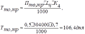 где Пто,тр – нормативная продолжительность простоев в ТО и ТР на 1000 км пробега, дни.