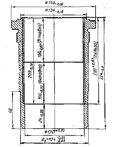 | 3 | Расточка рабочей поверхности гильзы | Алмазно-расточный станок | Спец. Приспособление | Резец с вставкой из Эльбора-Р | Нутромер | |