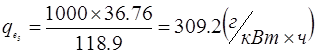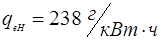 – удельный эффективный расход топлива при номинальной мощности, принимается по двигателю прототипа, ![]()