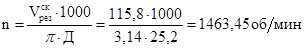 Корректируем фактическое число оборотов детали по паспорту станка ![]()