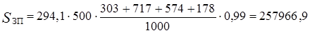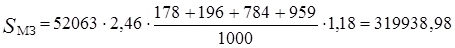 С учетом отчислений от средств на оплату труда 257966,9∙1,39 = 358573,95 руб.;