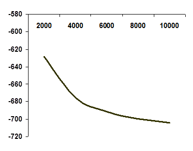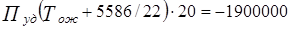 Построим график получившейся функции (рисунок 3.1). Из графика видно, что при сколь угодно больших Тож удельная прибыль стремиться к некоему числу. Из выражения (3.2), устремив Тож в бесконечность, можно заметить, что Пуд будет стремиться к -14470/2 = -723,5 руб./(т∙ч). Иными словами, при сколь угодно большом времени простоя в ожидании обратной загрузки значение удельной прибыли для рассматриваемого примера не уменьшится ниже -723,5 руб./(т∙ч).