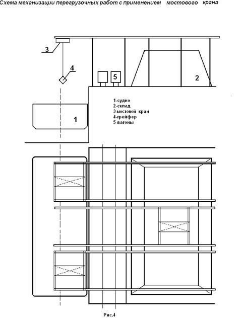 Предлагается к внедрению схема механизации с применением в качестве перегрузочной техники мостового крана. У этой схемы механизации есть свои плюсы и минусы, которые видно из данных таблицы 4.1., но в общем годовой экономический эффект от внедрения предложенной схемы составит 3745000 руб.