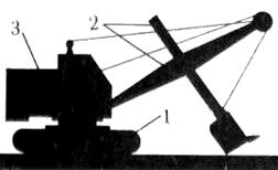 Одноковшовый экскаватор состоит из следующих основных частей: ходового устройства 1 поворотной части 3 и рабочего оборудования 2.