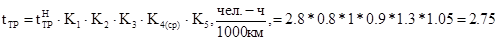 К2 - коэффициент корректирования нормативов в зависимости от модификации подвижного состава и организации его работы (принимается по табл. 2.9 [1]);