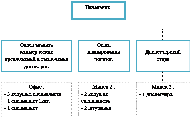 Организационная структура авиакомпании является линейно- функциональной. Директору подчиняется ряд заместителей, за которыми, закреплены определенные полномочия. Конечно, эта структура имеет ряд преимуществ и недостатков. Преимущество в том, что директор не должен заниматься всеми вопросами, поэтому у него есть заместители, которые занимаются каждый своим вопросом. Недостаток состоит в том, что принятие решения занимает много времени.