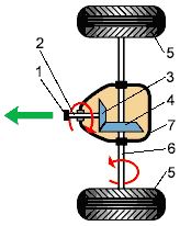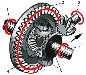 Дифференциал предназначен для распределения крутящего момента между полуосями ведущих колес при повороте автомобиля и при движении по неровностям дороги. Дифференциал позволяет колесам вращаться с разной угловой скоростью и проходить неодинаковый путь без проскальзывания относительно покрытия дороги. Иными словами 100% крутящего момента, который приходит на дифференциал, могут распределяться между ведущими колесами как 50 на 50, так и в другой пропорции (например, 60 на 40). К сожалению, пропорция может быть и 100 на 0. Это означает, что одно из колес стоит на месте (в яме), а другое в это время буксует (по сырой земле, глине, снегу).