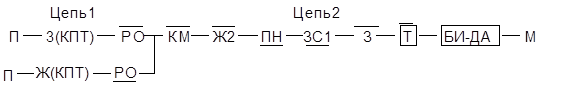 После освобождения поездом рельсовой цепи 1ПП она некоторое время работает в режиме двустороннего кодирования, когда с обоих ее концов поступают коды КЖ. В интервале кода КЖ, поступающего с релейного конца от светофора 1, в режиме кода КЖ, поступающего с питающего конца, работает реле И и через дешифратор включаются реле Ж, Ж/, Ж2 и Ж3 реле ОИ выключается. Последнее размыкает цепи кодирования на релейном конце; продолжается кодирование кодом КЖ рельсовой цепи 1ПП с питающего конца.
