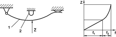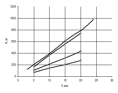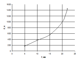 Рисунок 3 – Экспериментальная характеристика стального упругого элемента с резиновым буфером-ограничителем