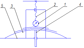 1 – динамометр, 2 – винт, 3 – рессора, 4 – измерительная линейка, 5 - рама
