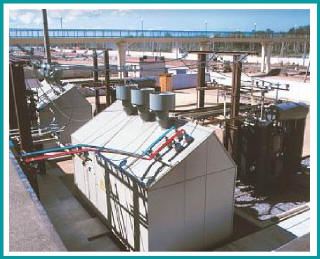 С экономической точки зрения, наиболее целесообразным, на первый взгляд, представляется открытое расположение большей части высоковольтных шин и высоковольтного оборудования электростанции. Тем не менее все чаще применяется оборудование в металлических кожухах с элегазовой изоляцией. Такое оборудование необычайно компактно и занимает в 20 раз меньше места, нежели эквивалентное открытое. Это преимущество весьма существенно в тех случаях, когда велика стоимость земельного участка или когда требуется нарастить мощность существующего закрытого распредустройства. Кроме того, более надежная защита желательна там, где оборудование может быть повреждено из-за сильной загрязненности воздуха.