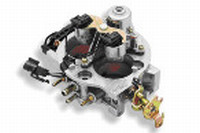Так как топливная форсунка расположена перед дроссельной заслонкой, практически на месте жиклера карбюратора, давление топлива в системе составляет всего около 1 кгс/см2. Регулятор давления системы расположен вблизи форсунки в центральном узле впрыска (рис. 2), где размещены также дроссельная заслонка, выключатель положения дроссельной заслонки, датчик температуры всасываемого воздуха.