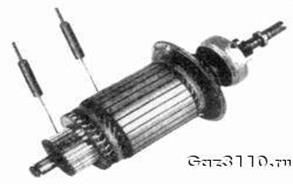 Биение коллектора относительно цапфы вала не должно превышать 0,05 мм. Биение пакета железа якоря относительно цапф вала не должно превышать 0,25 мм. Одновременно следует проверить отсутствие прогиба вала, так как прогиб может оказаться причиной заедания привода на шлицевой части вала. Если на валу якоря, в том месте, где вращается шестерня стартера, имеется желтый налет от подшипника, то его следует удалить мелкой шкуркой. Наличие желтого налета часто приводит к заеданию шестерни на валу после пуска двигателя и к «разносу» обмотки якоря.