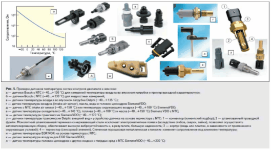 Эти устройства предоставляют информацию о температуре в различных узлах автомобиля. Например, они выполняют следующие измерения температуры (рис. 5):