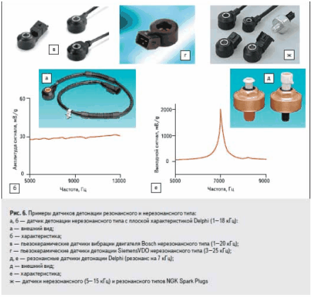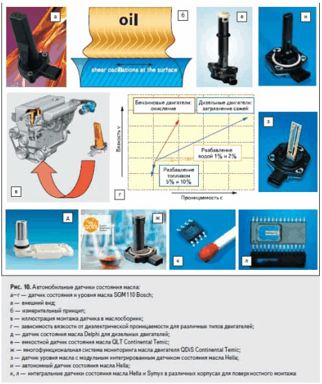 Новые применения для датчиков связаны с мониторингом процесса горения непосредственно в цилиндрах (engine combustion sensors). Например, для осуществления замкнутого контроля Honeywell, SiemensVDO (рис. 4ш, щ), Dana предлагают датчики давления в цилиндрах. Датчик Incylinder Pressure Sensor Honeywell допускает различные варианты расположения — в соединителе свечи, головке цилиндров, инжекторе — и работает при высоких температурах (до 350 °C).