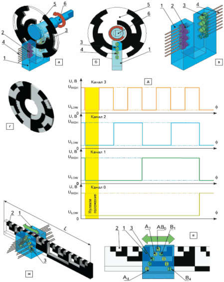 На основе принципа интерферометрии Муара может быть создан и абсолютный энкодер, позволяющий получить информацию об абсолютном положении (рис. 22).