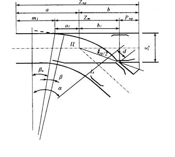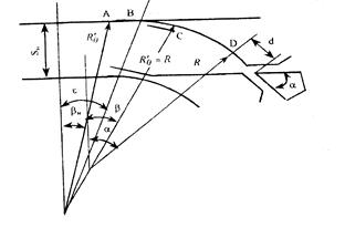 Вначале определяется параметры криволинейного остряка (рис 1.1) начальный угол остряка b, радиус R остроганной части, радиус неостроганной части остряка