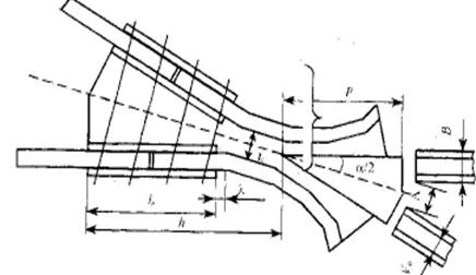 Для цельнолитой крестовины(рис2.1), минимальная длина переднего вылета определяется из конструктивного условия расположения накладок (накладки не должны заходить за первый изгиб усовиков).