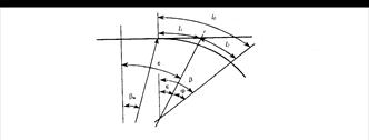 При определении полного стрелочного угла необходимо вычислить длину дуги остроганной части остряка l0-1 .