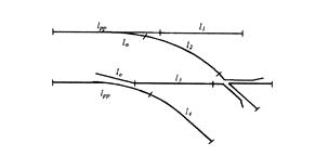 Рельсовые нити соединительной части l1 ; l2 ; l3 ; l4 определяются по формулам: