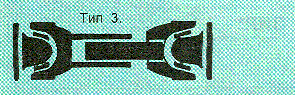 6)Карданные передачи в виде неразборного трех шарнирного вала с промежуточной опорой.