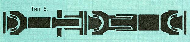 В остальном на всех автомобилях применяются трубчатые валы, так как они при меньшем весе могут передавать большие крутящие моменты и, что самое главное, имеют большее критическое число оборотов. Показаны трубчатые валы с различными наконечниками, к которым крепятся вилки или крестовины шарниров: с коническим наконечником а, с шлицевым, с коническим и шлицевым, с фланцем и вилкой, с коническим наконечником и вилкой, с шлицевым наконечником и вилкой.