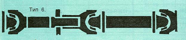 Мощность от коробки передач к заднему ведущему мосту передается через два карданных вала три шарнира. Передний вал имеет промежуточную опору. Три двух шарнирные карданные передачи имеют двухосные полно приводные автомобили. Здесь между карданными передачами установлена раздаточная коробка 6.