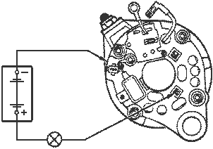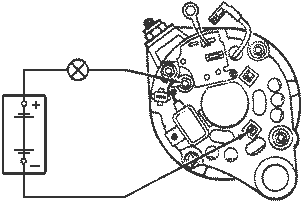 Для проверки короткого замыкания в "положительных" вентилях "плюс" батареи через лампу соедините с зажимом 30 генератора, а "минус" - с одним из болтов крепления выпрямительного блока:
