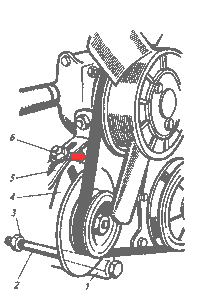 | 1. Ослаблена гайка шкива генератора | Подтяните гайку |