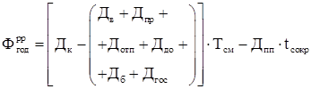 | 6. Количество дней в цикле, дн. | Дц =Драб. ц +Дто.трц +Дпр.п.ц =1597,37+157,08+95,84=1850,29 |
