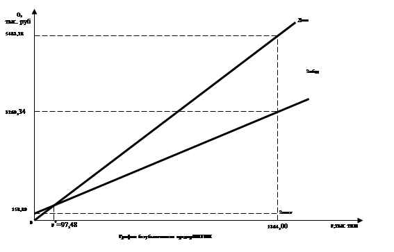Мертвая точка 0 соответствует транспортной работе Р*, которая не приносит прибыли, т. е. доход равен затратам. Уменьшение объема работ приведет к убыточности, а увеличение – к прибыльности.