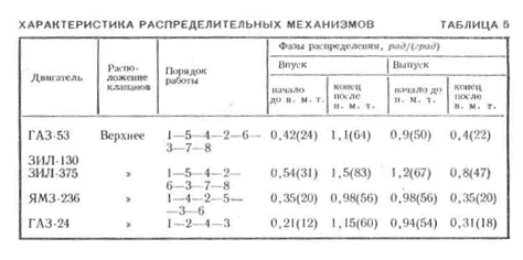 В табл. 5 приведены характеристики распределительных механизмов.