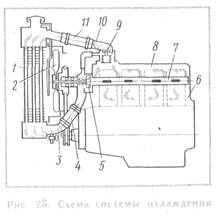 На рис. 33 изображена система охлаждения двигателя ЗИЛ-130.