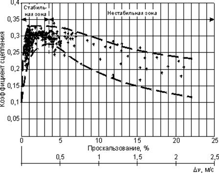 использованием стабильного участка характеристик сцепления, особенно зоны II (см. рис. 2);