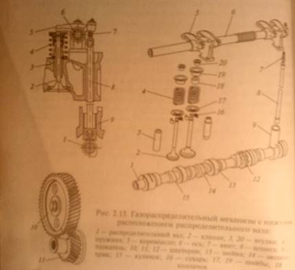 Рис. Газораспределительный механизм с нижним расположением распределительного вала: