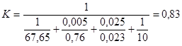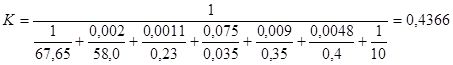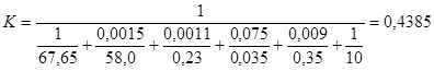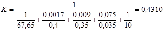Коефіцієнт теплопередачі багатошарової плоскої стінки, Вт/м2∙ К: