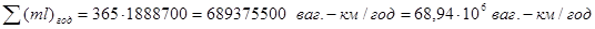 Рассчитываю общий годовой пробег грузовых вагонов на участке, необходимых для выполнения перевозок