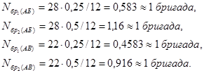 Число ремонтных бригад при равномерном подходе поездов