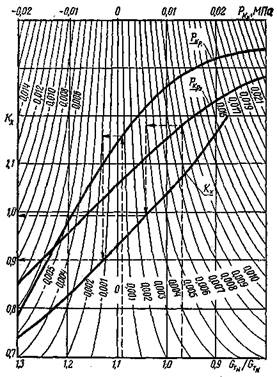 Рис. 3. Номограма для знаходження поправочного коефіцієнта Кх=f'(Ркx/Ркp) (тут Ркx – тиск надуву, зміряний на холостому ходу; PKP = f(GTH/GTN) розрахункове значення тиску надуву).