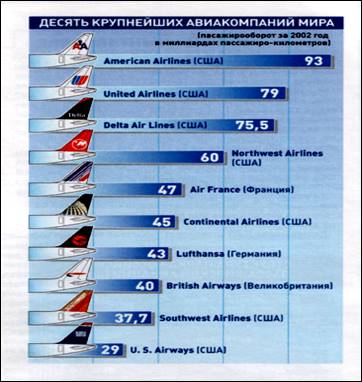 Особенно же демократичными и «доступными» оказались авиаперевозчики США, и в результате — произошла страшная трагедия. Как теперь выясняется, сигналы о готовящемся нападении поступали и в ФБР, и в ЦРУ, но два этих крупнейших и влиятельнейших государственных ведомства так и не смогли договориться между собой. Сегодня в Соединенных Штатах Америки предпринимаются беспрецедентные меры безопасности. После этих событий объём пассажирских перевозок сильно уменьшился как в США, так и в мире (см. Приложение рис. 6). Ведущий российский эксперт по американской гражданской авиации В. Саморуков отмечает: «Практически полностью реформирована и создана новая система авиационной безопасности. Значительно усилена ответственность Министерства транспорта США, в рамках которого создан специальный орган — Управление безопасности на транспорте, возглавляемый заместителем министра. Согласно новым правилам с 1 января 2003 года проводится всеобщий досмотр пассажиров и их багажа во всех 429 коммерческих аэропортах США с помощью специальной электронной аппаратуры для поиска взрывчатых веществ, в некоторых же случаях предусматривается тщательный личный досмотр, включающий, например, просвечивание обуви пассажиров. Усилен контроль и за поведением пассажиров на борту самолета. Ужесточены правила и процедуры досмотра и для членов экипажей. Задача новой системы авиационной безопасности — восстановить доверие общества к авиаперевозкам, и, надо сказать, это во многом удается, если судить по последним данным о деятельности крупнейших мировых воздушных перевозчиков».